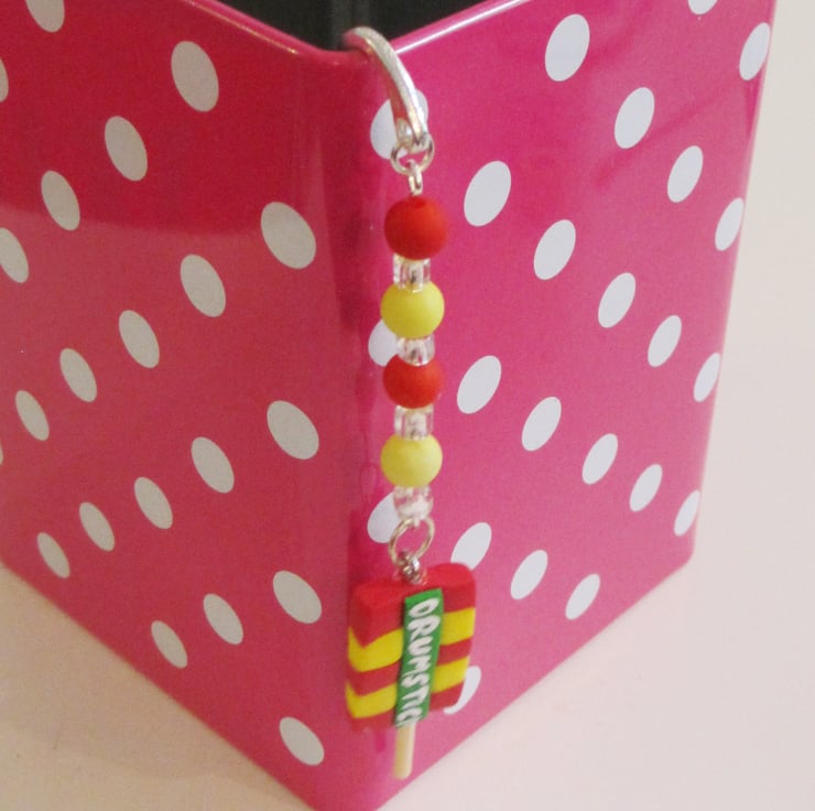 A retro cute drumstick lolly sweet charm, on a bookmark!