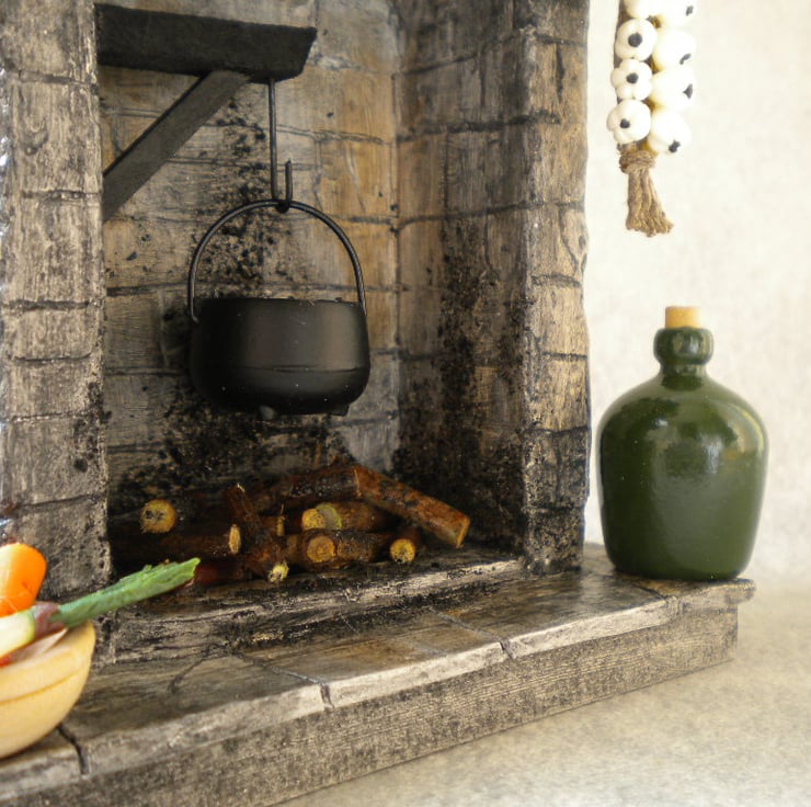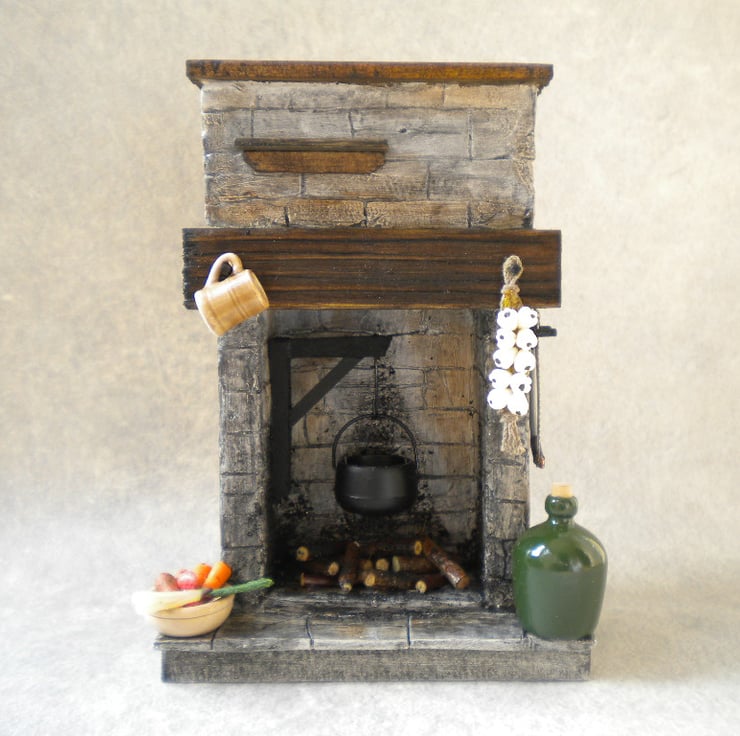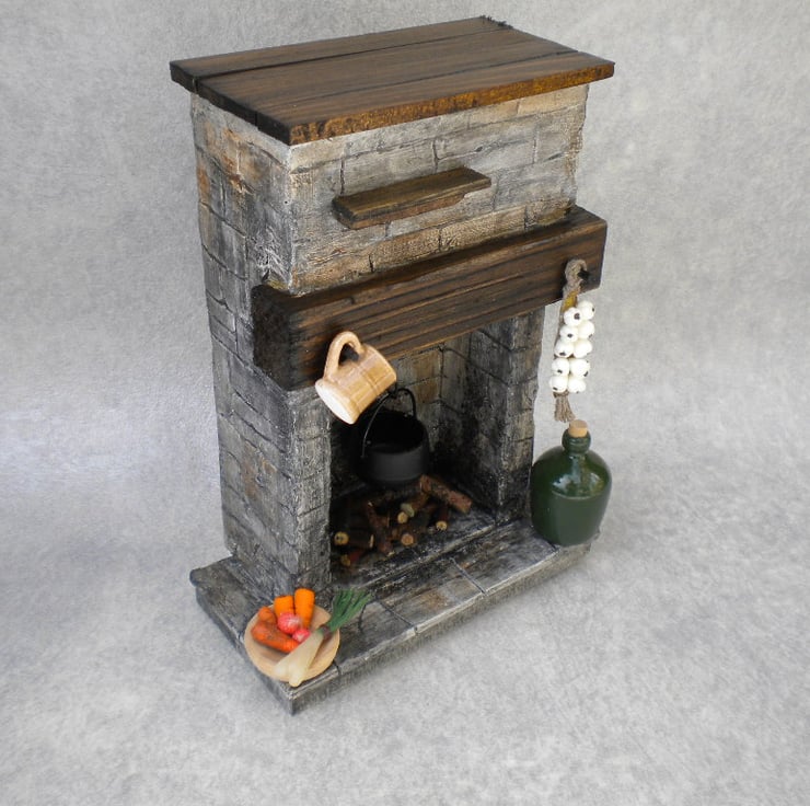 A 1/12th scale dolls house fireplace which is full of character and charm.