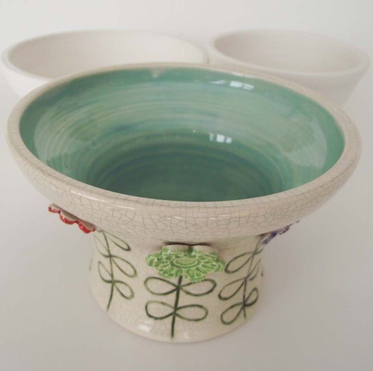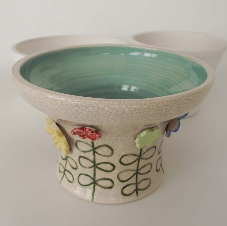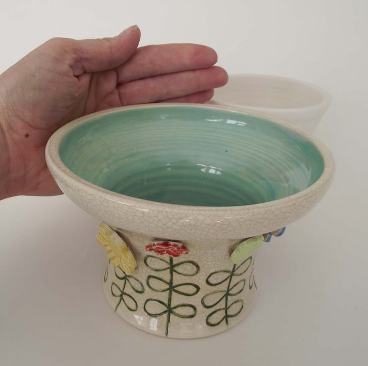 There is a tiny little mark in the glaze of the turquoise interior, so I am reducing this pot from £20 to £18.