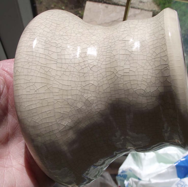 The reason that I am selling this pot at a special reduced price is because the crackle glaze looks a bit lumpy when the sun shines across the pot - you can't generally notice it otherwise. It's OK if you live in a gloomy climate or you're quite fond of keeping the curtains shut!