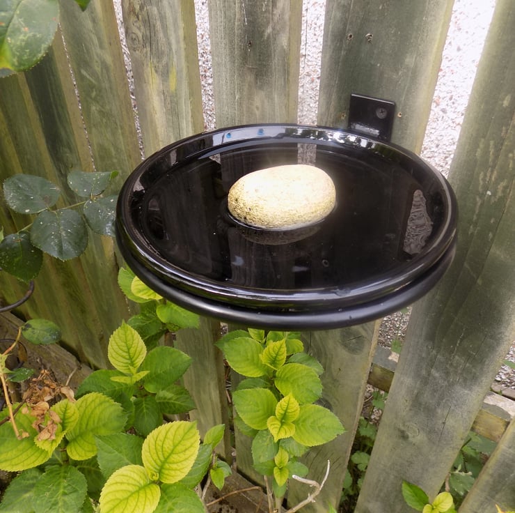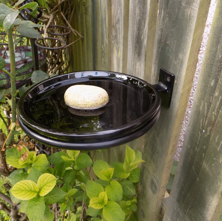 1 x Black Glazed Bird Bath & Quality Hand Crafted Wrought Iron (Forge Steel)
