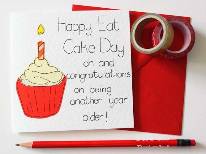 Happy eat cake day! Your birthday is the one day where you are allowed to eat cake for breakfast. A cute handmade Card to send to a brother, sister, Dad, Mum or friend on their Birthday.