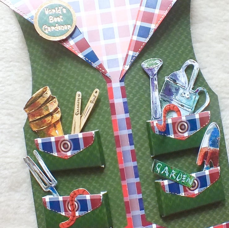 This 3D handmade card makes an ideal birthday card for gardeners. Embellished with gardening tools and sundry . Approx. 7"x5" in size, it has been left blank on the inside for your own message. Made using premium quality card stock.