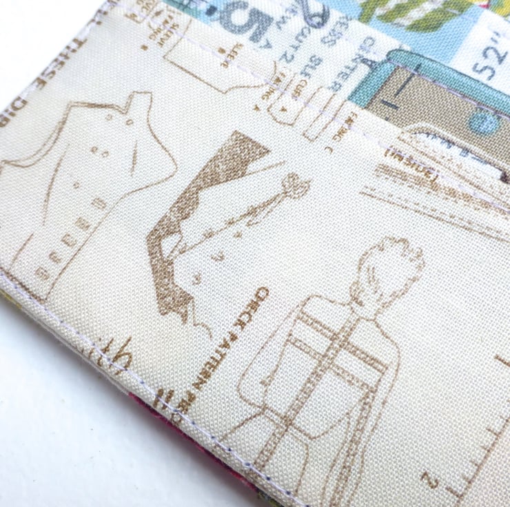 The fabrics used are by Makower and feature two different sewing related designs (see photos 4&5 for close up detail).