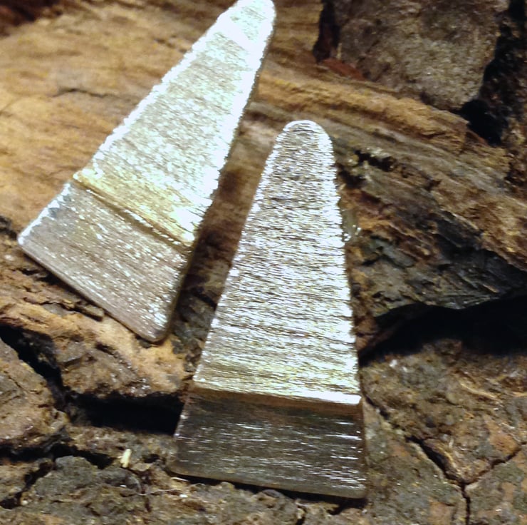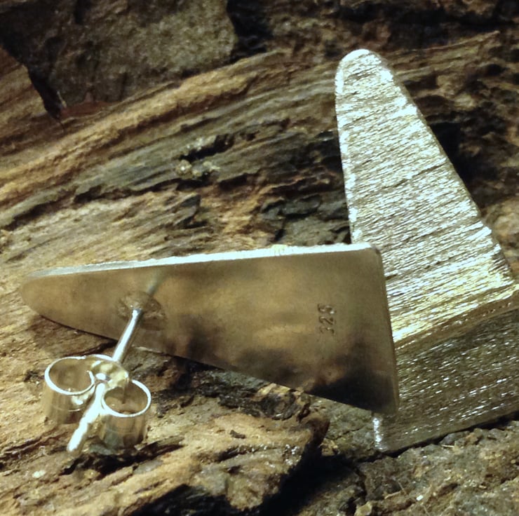 Beautifully crafted 925 silver earrings, using 1mm sterling silver with a textured finish, causing light to reflect on the many surfaces. A strip of 9 ct gold is fused onto the earring to symbolise the sun shimmering on the sea.
