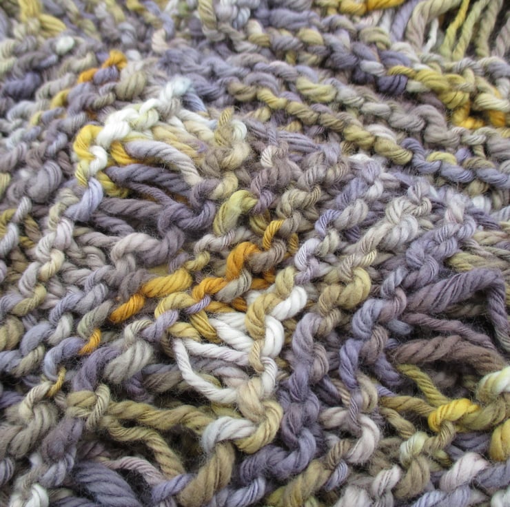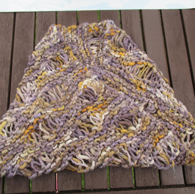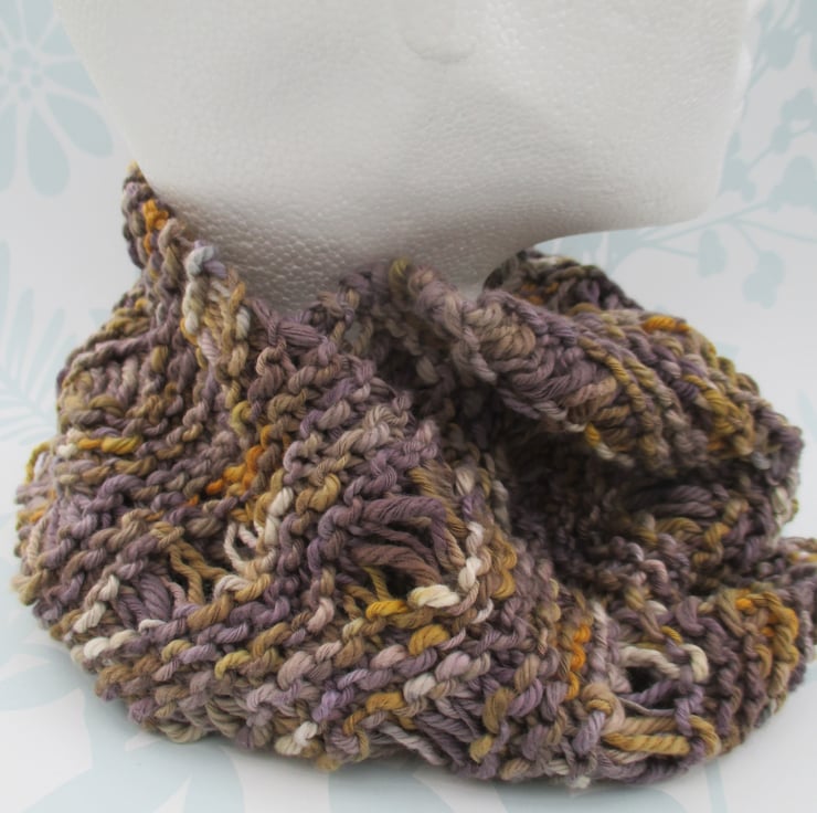 They are made from a lovely chunky soft cotton which knits up with a random mix of colour. Heavier than the silk cotton cowls in my shop so therefore a little more substantial. Perfect for cool Summer evenings.
