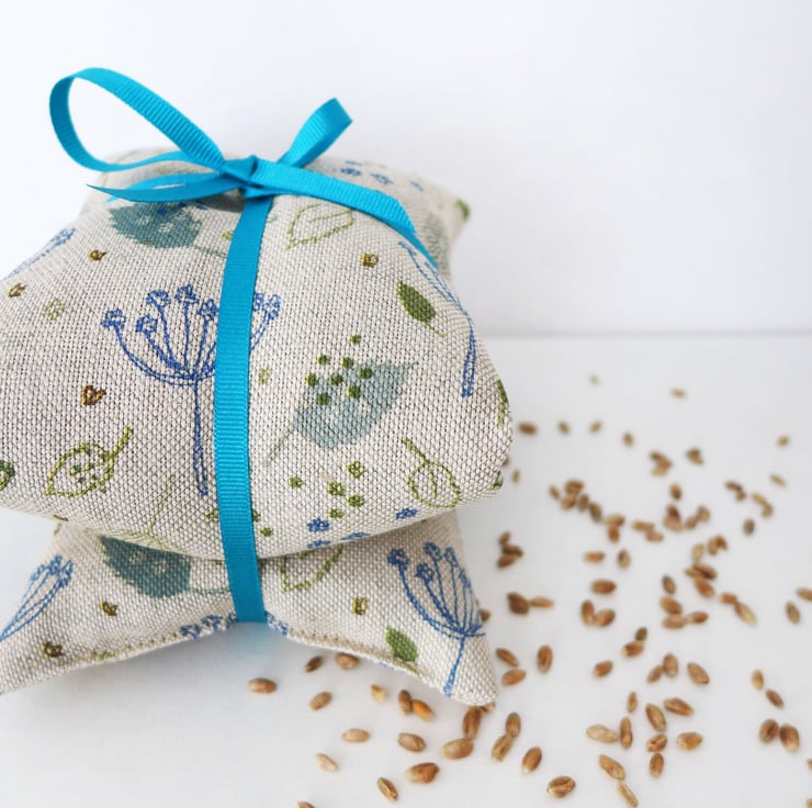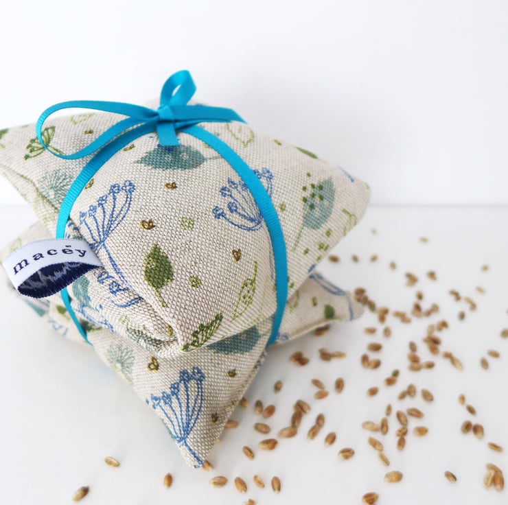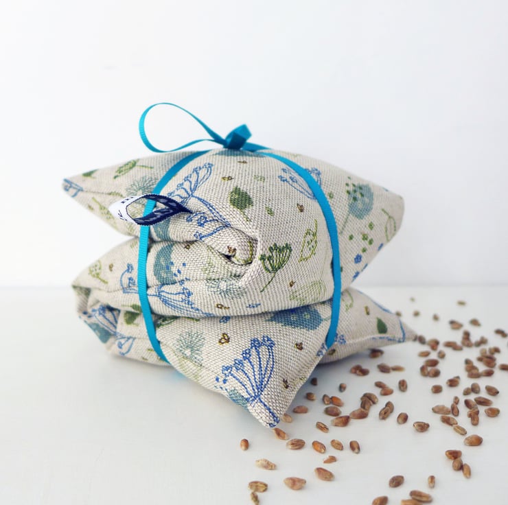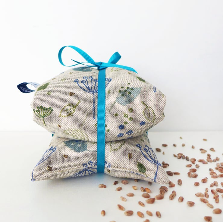 A lovely natural Blue Parsley print wheat heat bag, filled with dried wheat and a hint of lavender.