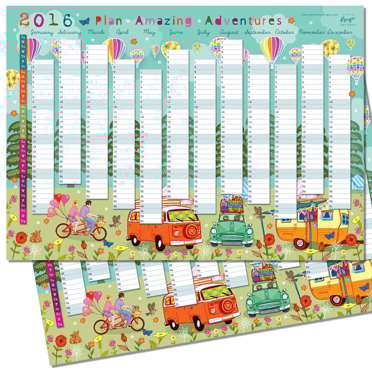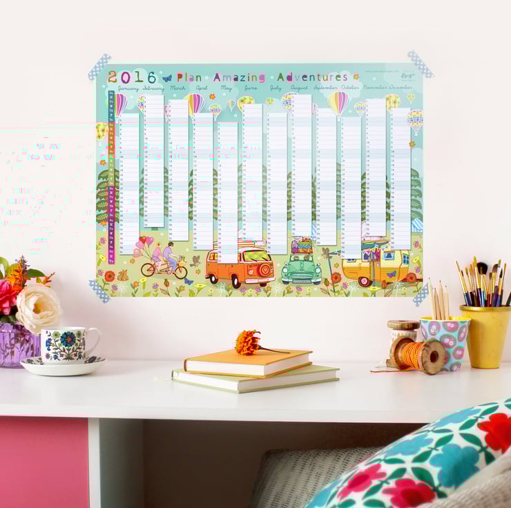 A2 sized (594 x420mm) 2016 Wall Planner 'Plan Amazing Adventures'