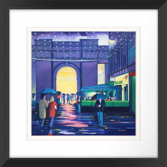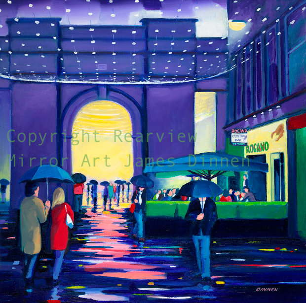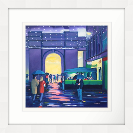 High quality limited edition giclee print of the recent painting by popular Glasgow artist James Dinnen of the iconic Rogano restaurant in Exchange Place , Glasgow .