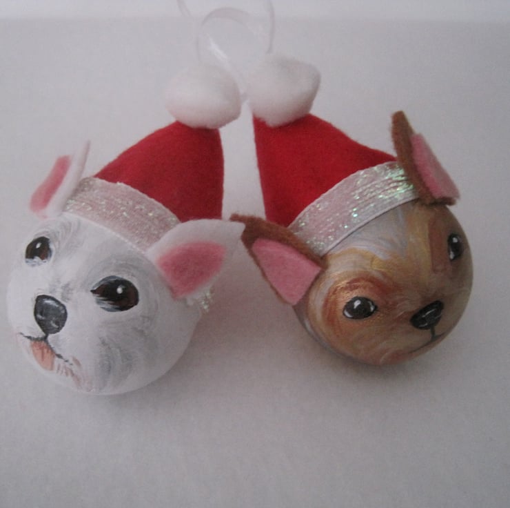 This listing is for a pair of (2) personalised pet Christmas decorations. They are wooden balls, hand painted to look like your favourite animal. Each one is unique.