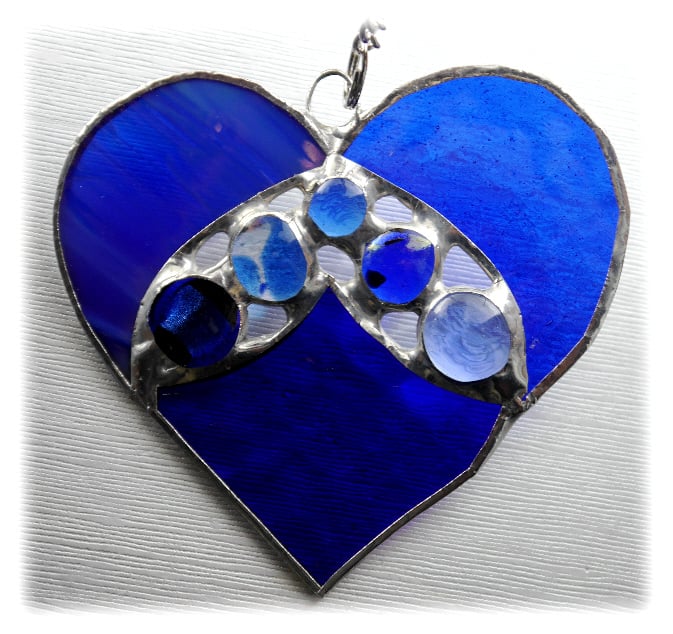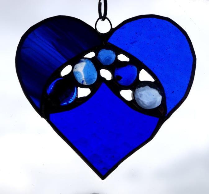 This is a stained glass suncatcher handmade using the Tiffany copper foil technique.