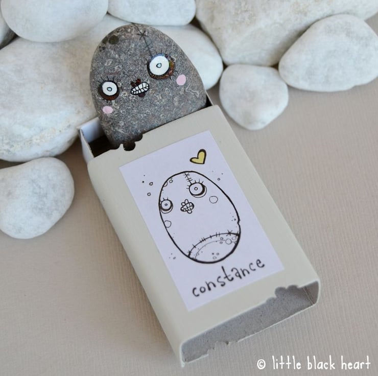 this original little collectable artwork is handpainted by myself. it is not varnished or sealed as i did not want to change the original colour and feel of the pebble, so please take care not to handle too much, or those delicate little features might rub off.