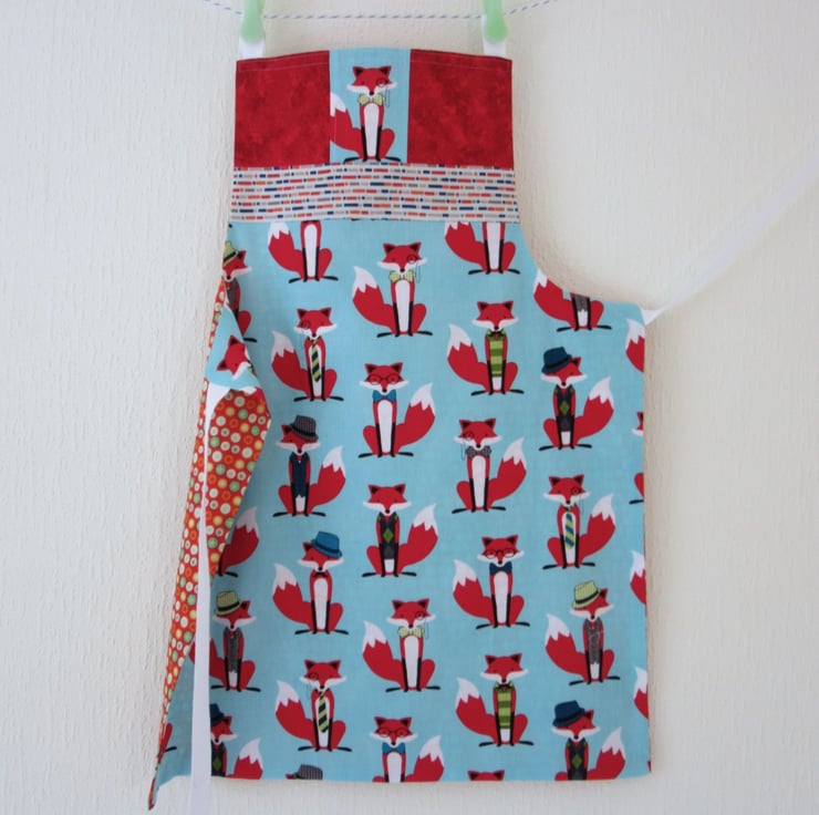 Featuring The Adventurous Mr Fox, this reversible kids apron is a perfect gift at anytime of the year. Made from stunning quilting cotton prints, this apron does double duty as the other side has a roomy pocket based around a feature fabric of your choice. Ideal for baking and cooking, as well as for artwork or any type of messy play.
