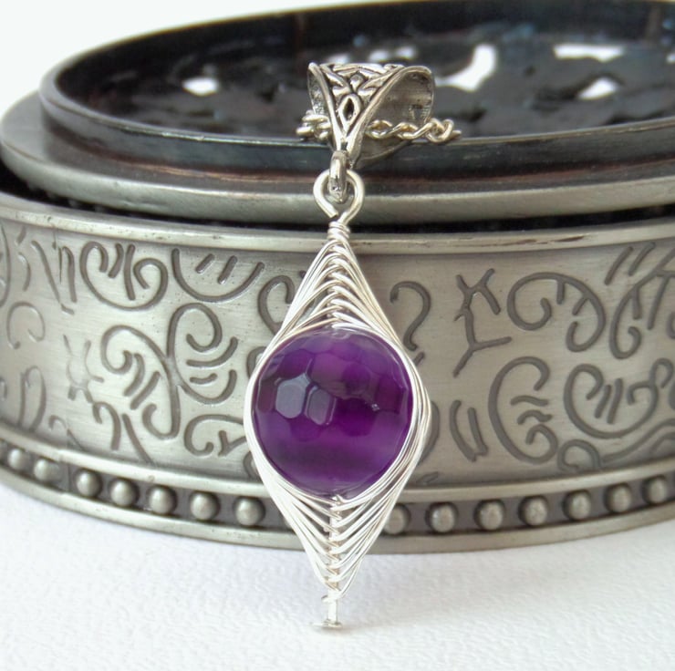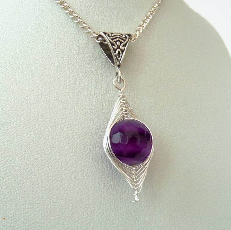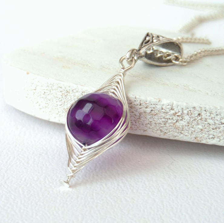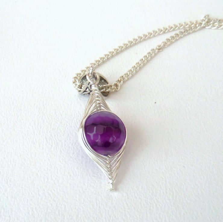 A beautiful purple agate gemstone, wire wrapped with anti-tarnish silver coloured wire, makes a gorgeous and dainty necklace.