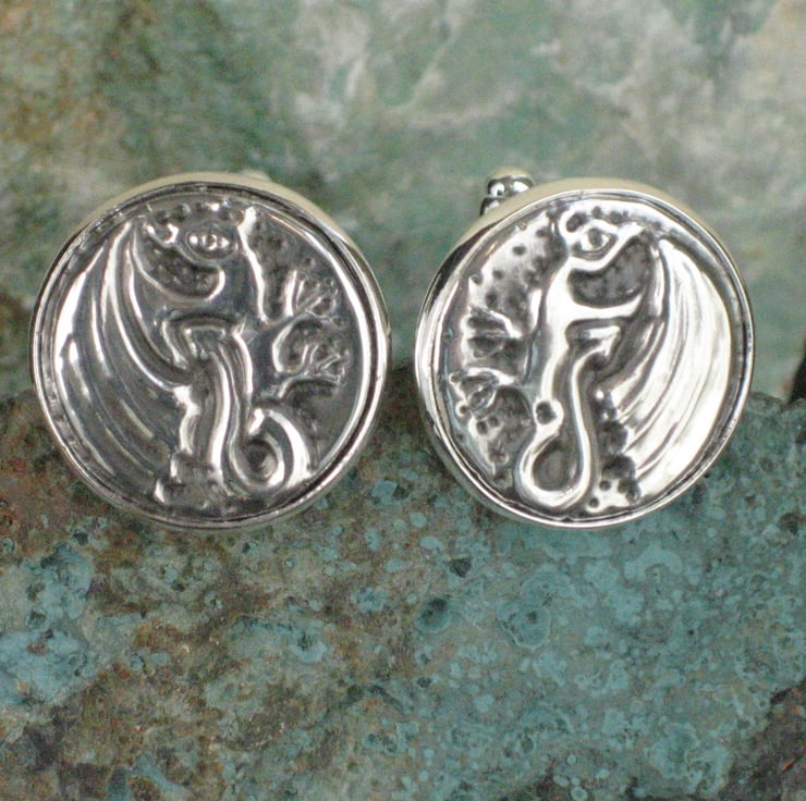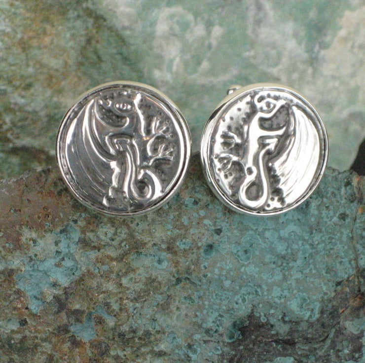 A pair of rampant dragons in shiny modern pewter. A great gift for a fan of fantasy games and films such as Game of Thrones or Tolkien. Each link measures 21mm across and has been hand-crafted in lead-free pewter. Presented in a smart grey gift box. A great gift for a man for a 10th Wedding Anniversary or Birthday.