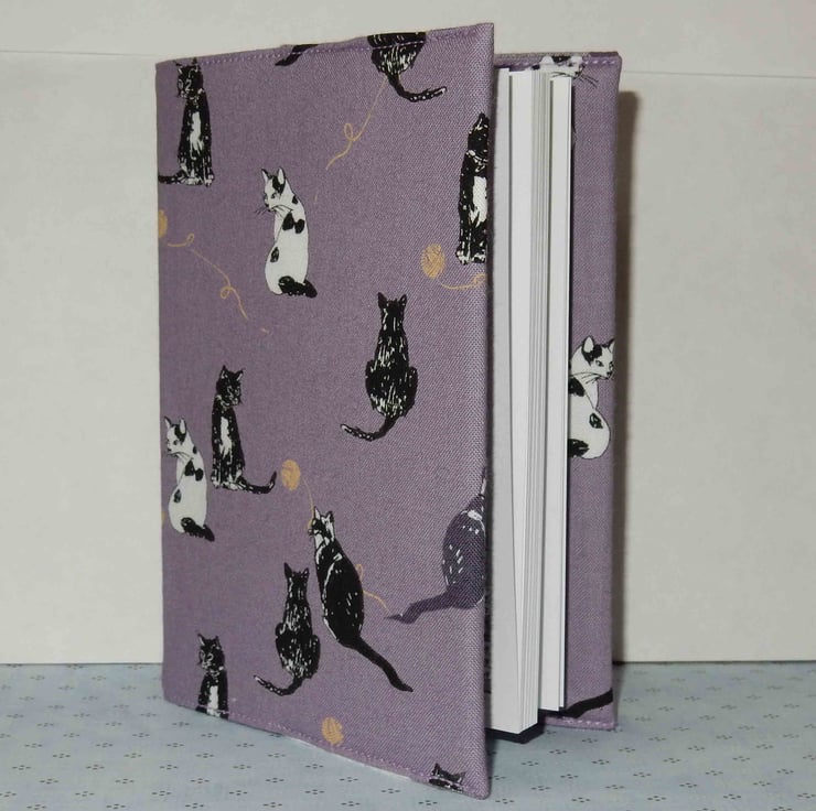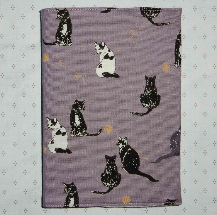 This is an fun A6 (approx. 6x4 inches) week to view fabric covered diary. It is covered in a fun black and white cat print fabric with a purple background. Complete with standard week to view diary, refills are easily available, for the next year. The cover is lined, interfaced and removable.