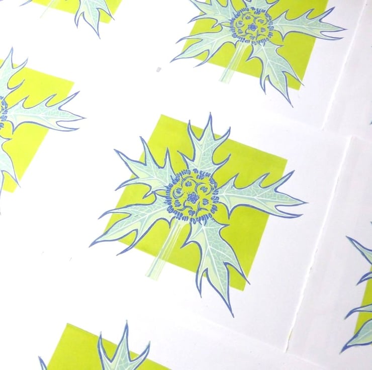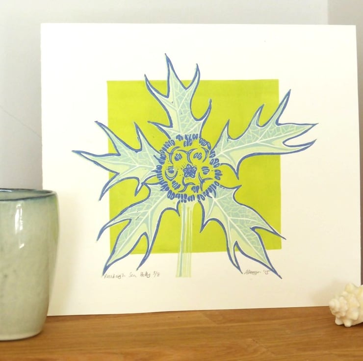 ORIGINAL lino print - 'Rossbeigh sea holly '