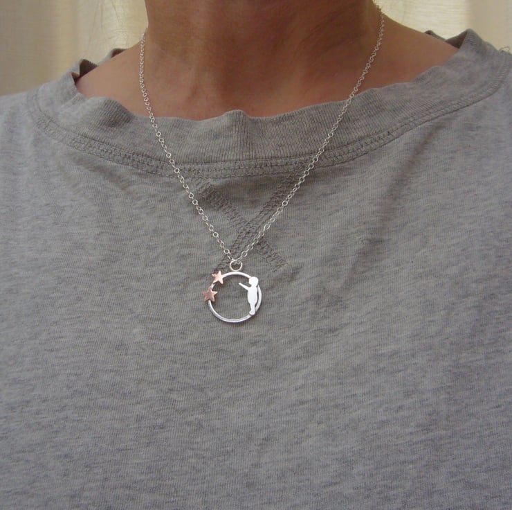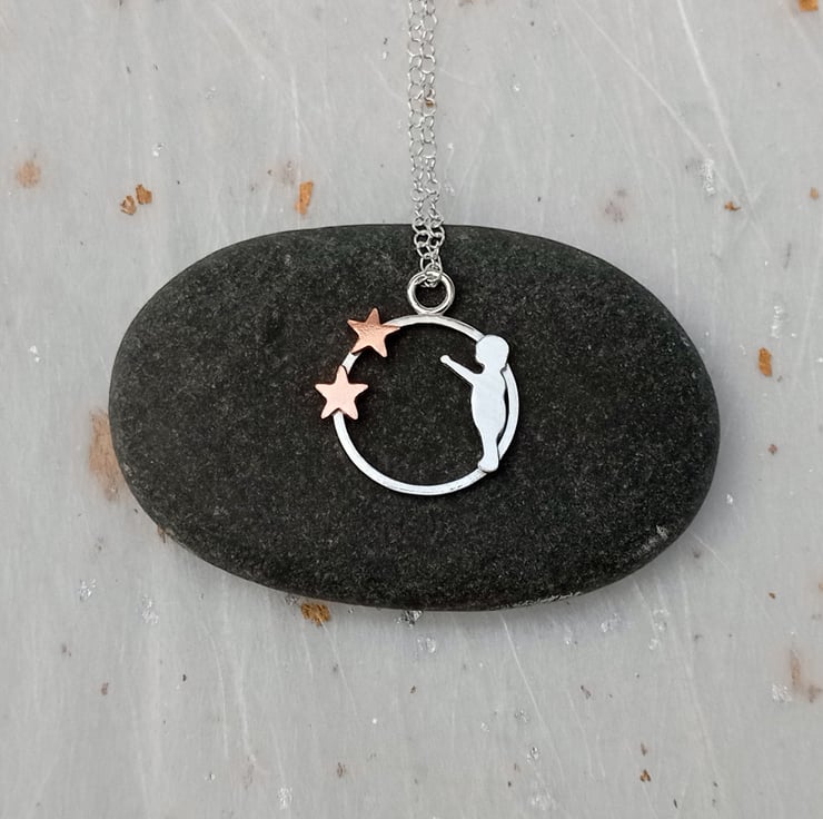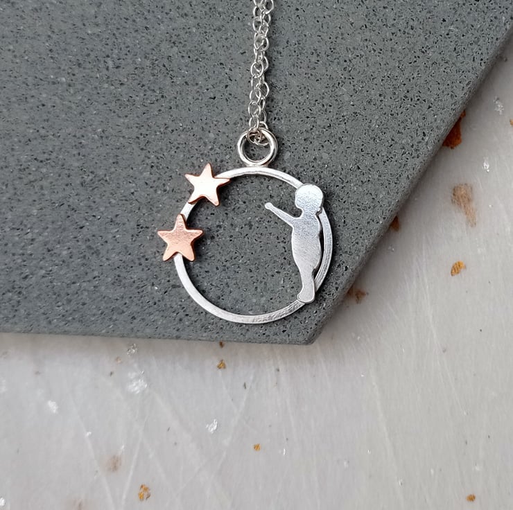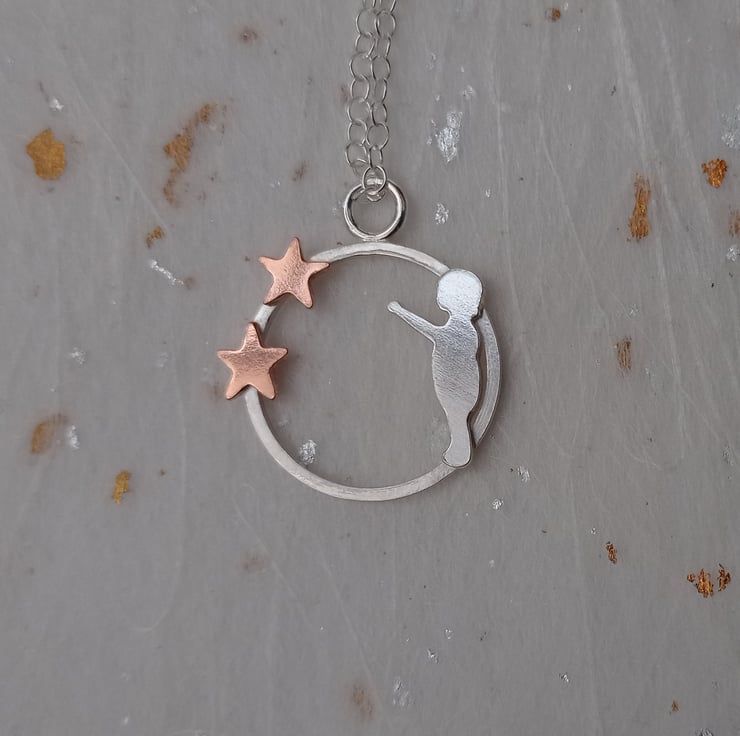 Handmade sterling silver and copper ‘Child with stars’ necklace