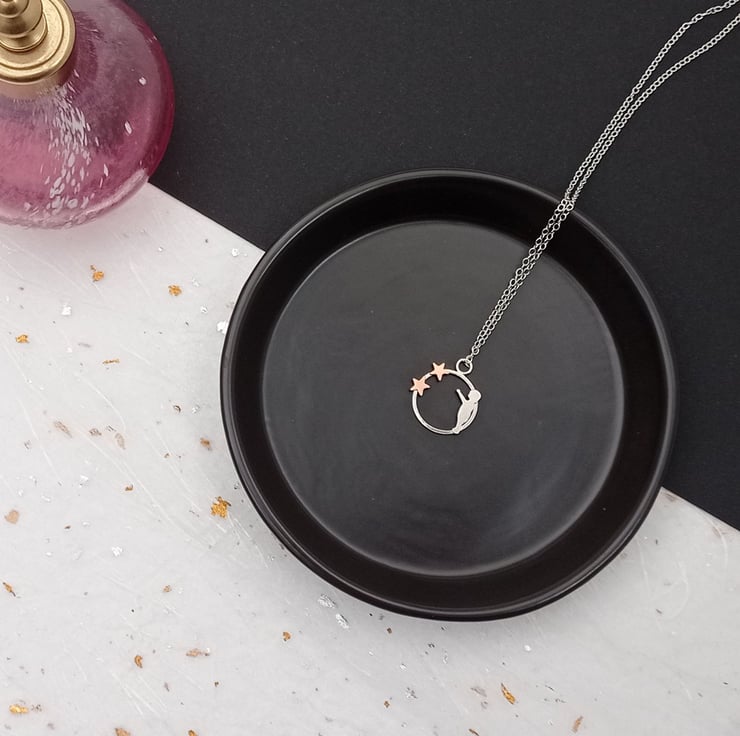I was inspired by my children to make a small collection showing love, dreams and play. This sterling silver necklace represents dreams.