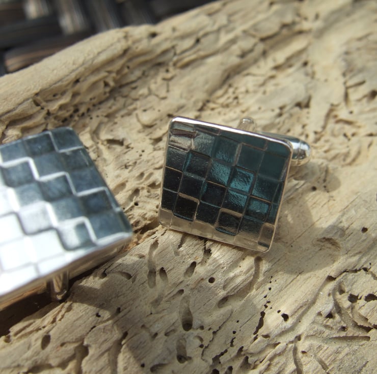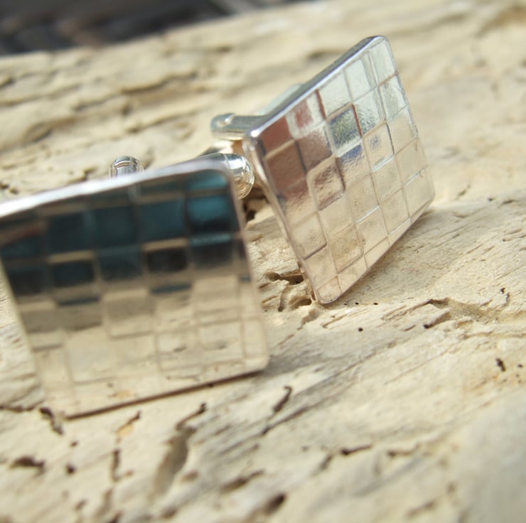 These Checker Plate Cufflinks measure 14 mm x 14 mm and together weigh approx 9 grams.