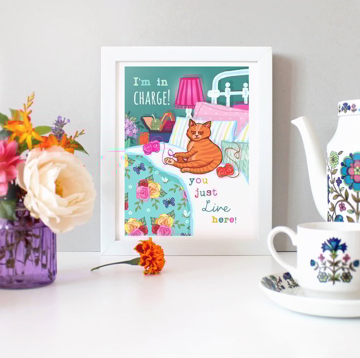 10x8 print of an original line drawn illustration which has been digitally coloured. Print comes in a white frame. Printed with archival quality inks onto a premium, heavyweight (192gsm) matt finish paper.