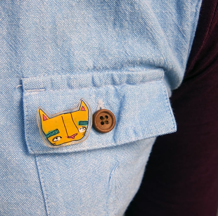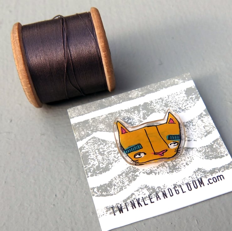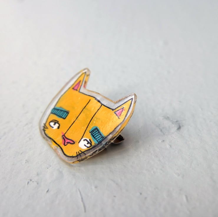 This 'Weird Kitty' broochis hand drawn and hand painted by Artist Twinkle & Gloom. The drawing is a copy of original Twinkle & Gloom artwork and is perfect for any crazy cat person. This lovely kitty comes in Mustard.