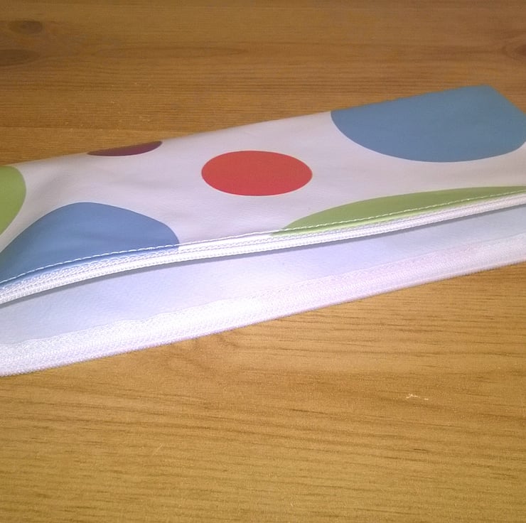 Handmade in a thinner texture oilcloth, so more flexible and lighter to carry