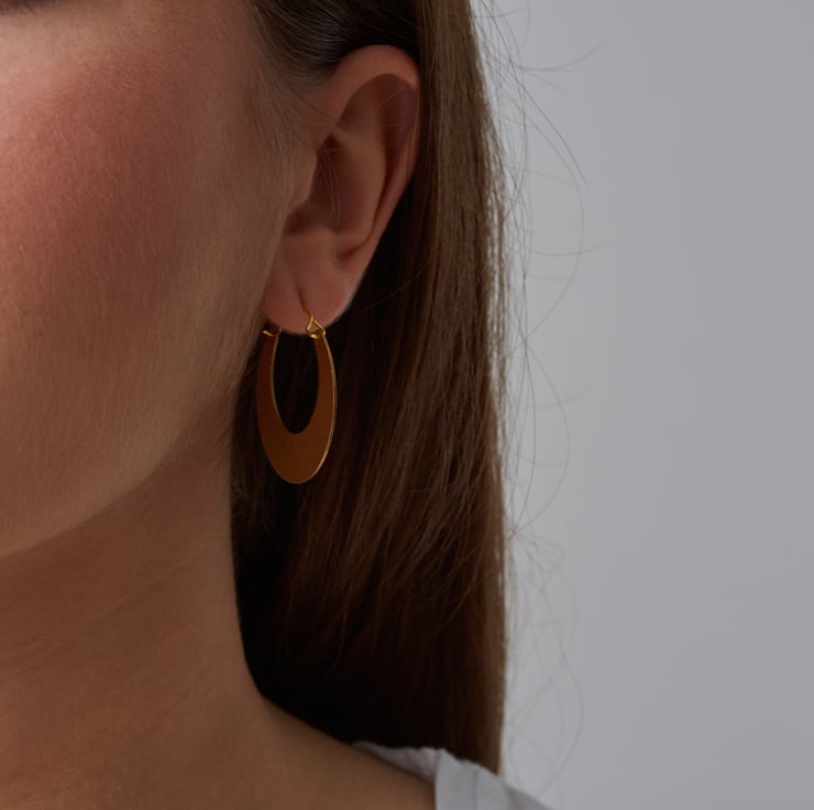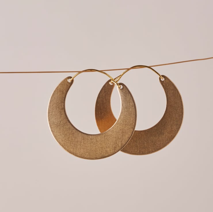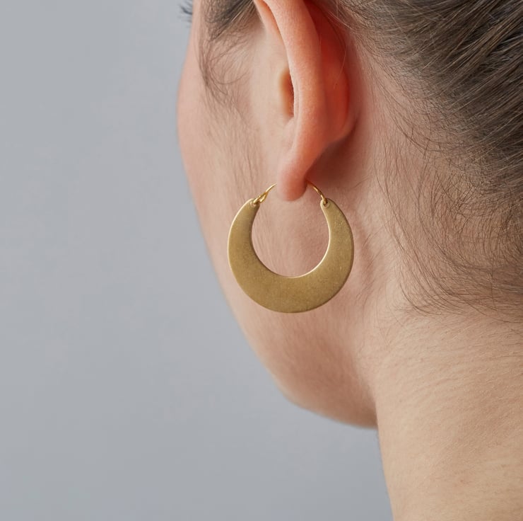 A crescent-shaped take on the classic hoop or creole earring, drawing influences from both tribal and 1970s jewellery.