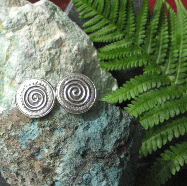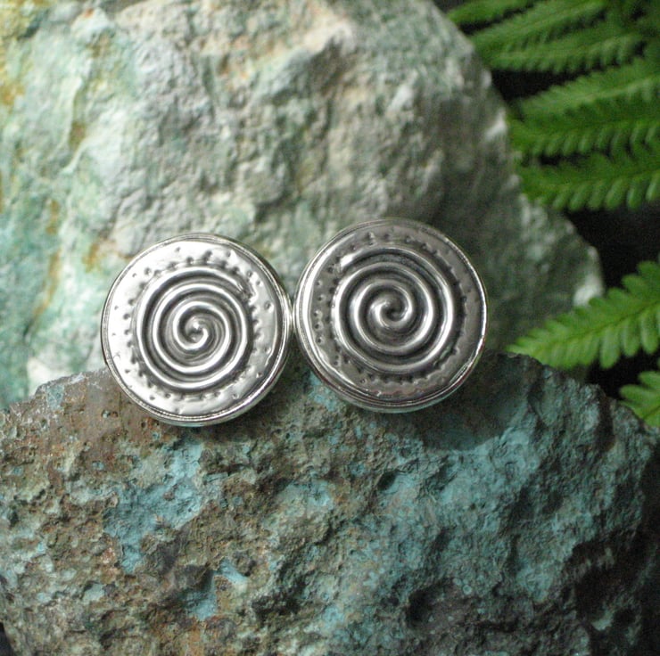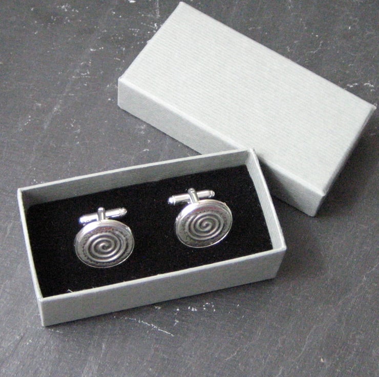 Cufflinks. Spiral cuff links hand-crafted in pewter. Each cufflink measures 21mm across and has been hand-crafted in lead-free pewter using the repousse method.The cufflinks are presented in a smart grey gift box. Cufflinks make great gift for a man for a 10th Wedding Anniversary, birthday or Christmas. Other cufflinks are available in my shop, The Owl and the Pussycat.