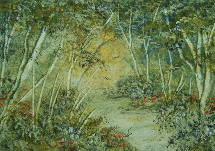 This tiny woodland scene has been created using quality acrylics. It will come in a clear polybag to protect it. This is an original and not a print. An aceo is a miniature painting that measures just 2.5" x 3.5" and is highly collectable. It can be framed or displayed in a photo album.