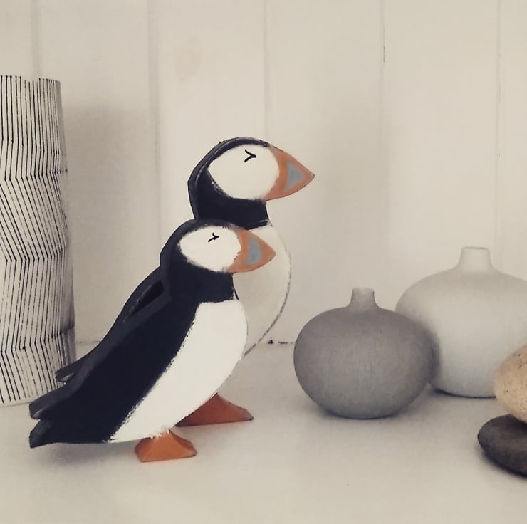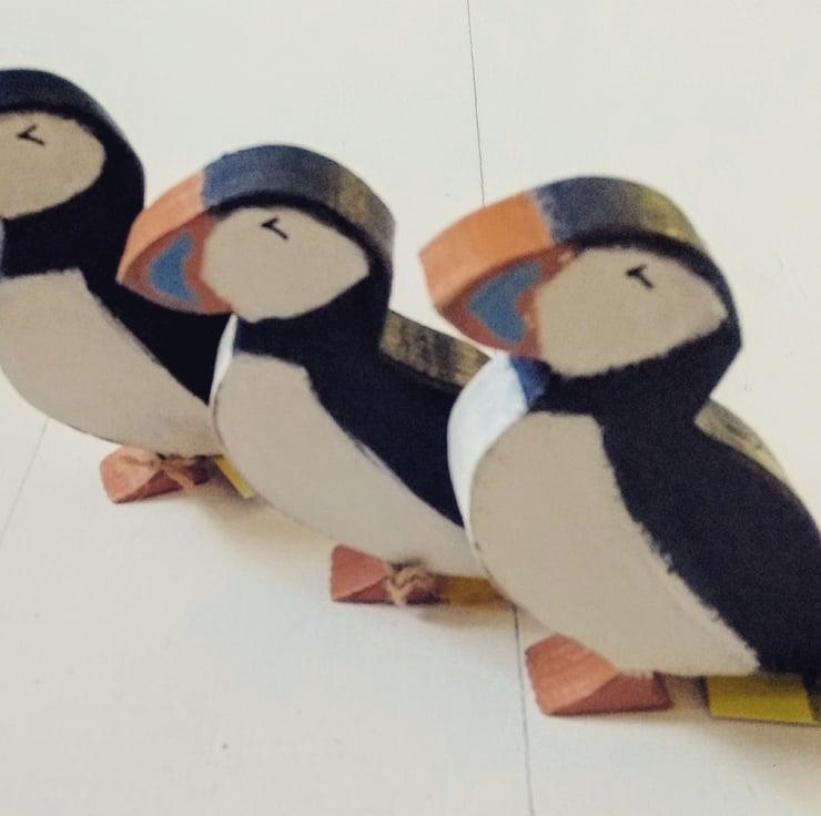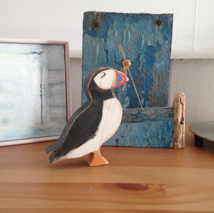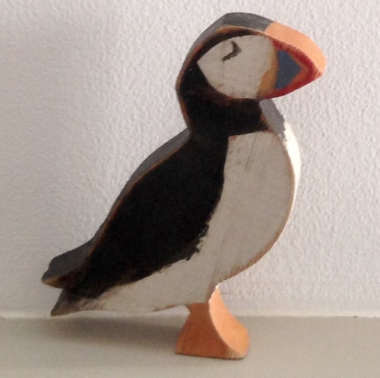A little hand cut and hand painted Puffin made using reclaimed wood, please note the wood and grain will vary depending on the wood sourced. I hand paint them using Annie Sloan Chalk Paint and then apply a coat of matt varnish to protect.