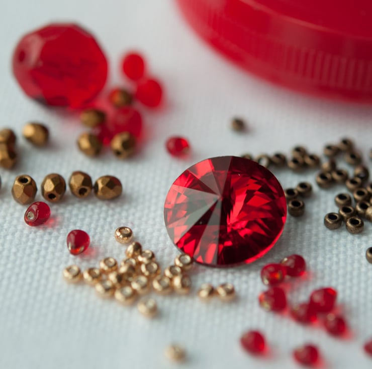 All of the beads you need to make one of my Baroque Tape Measure Srrounds, plus the right tape measure. The pack includes Swarovski Rivolis; Swarovski Bicones; Miyuki seed beads and drops; Czech fire polished crystals and round beads and bonus feature beads from my collection, so you can design and make your own unique tape end using the techniques you've just tried.