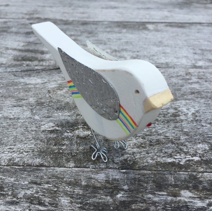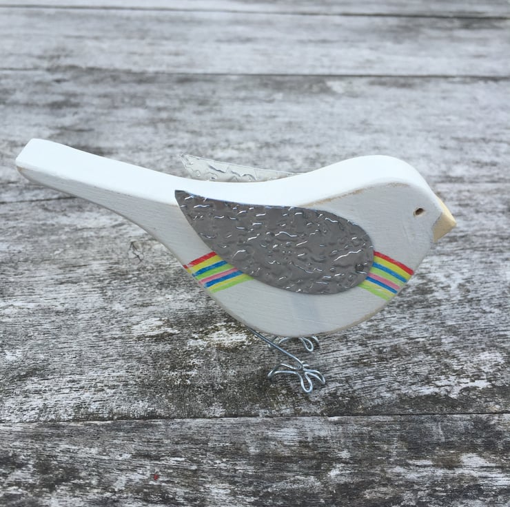 Handmade wooden 'Rainbow Bird'. Rainbows have come to symbolise so many things and this little bird represents everything that Rainbows stand for - peace, harmony, nature, new beginnings and pride. She will look gorgeous upon a shelf or mantle in your home.