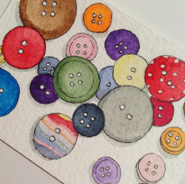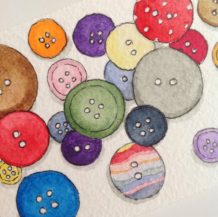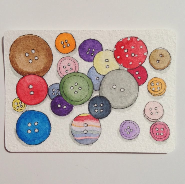 A fun, contemporary style ACEO of a scattering of buttons from my button jar.