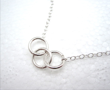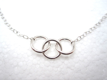 Simple little Three Interlocking silver circles necklace, a pure & simple design. 18" with 8mm circes (approx). (I can also make this for four or five sisters too)