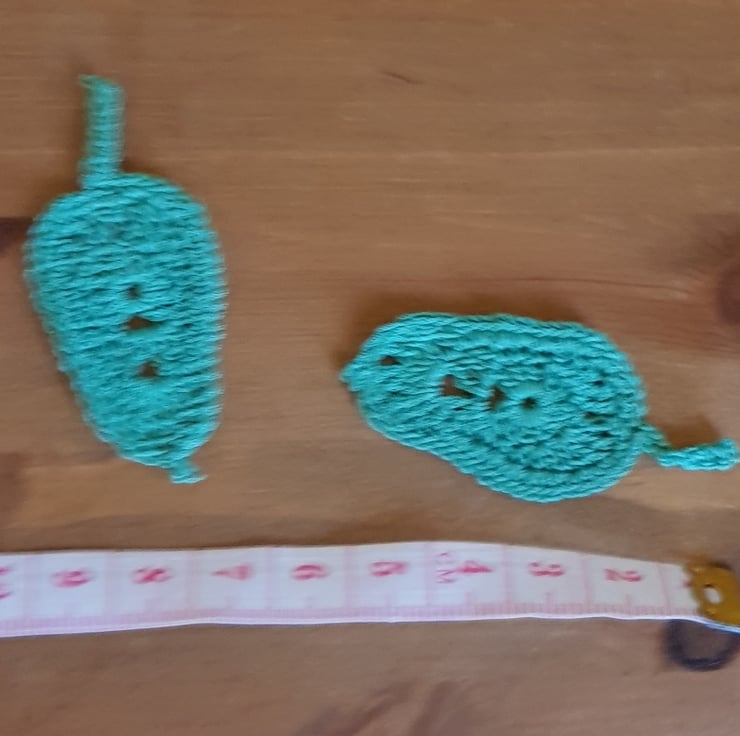 15 Rich Green Leaves - 5 of each of 3 designs, approx 5/6cm in length & 2/3cm wide (see pics) - all made from 100% mercerised cotton