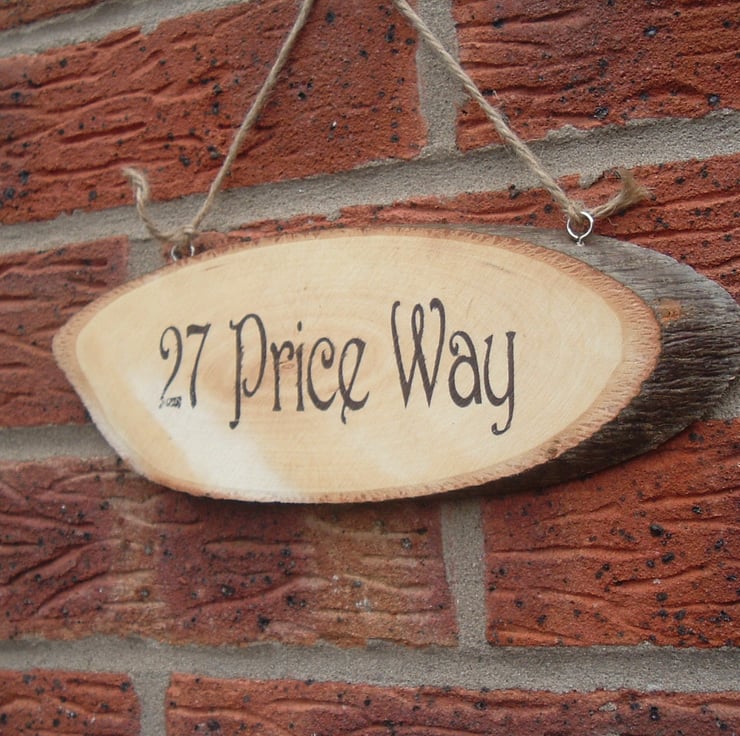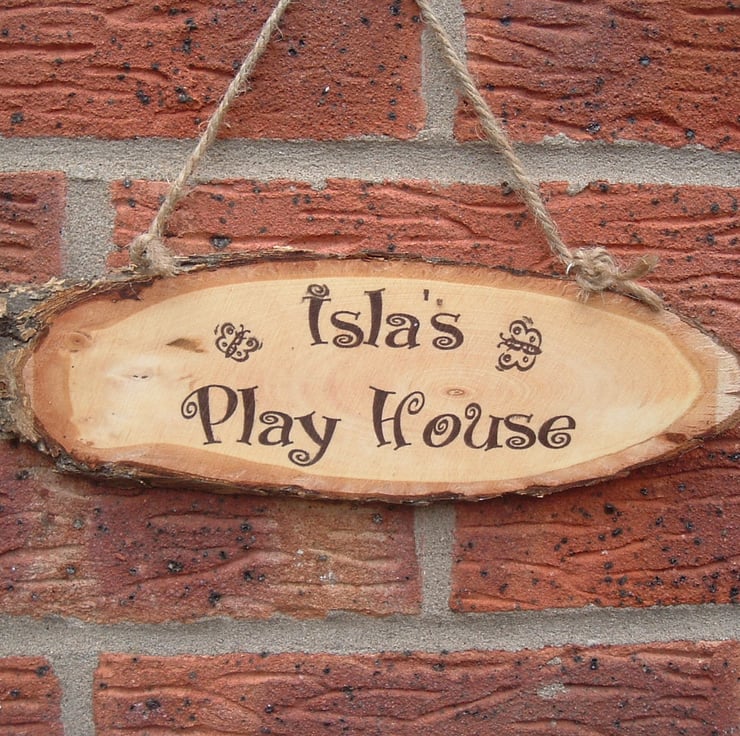 House name address personalised hanging rustic tree slice bark sign playhouse