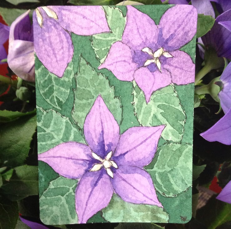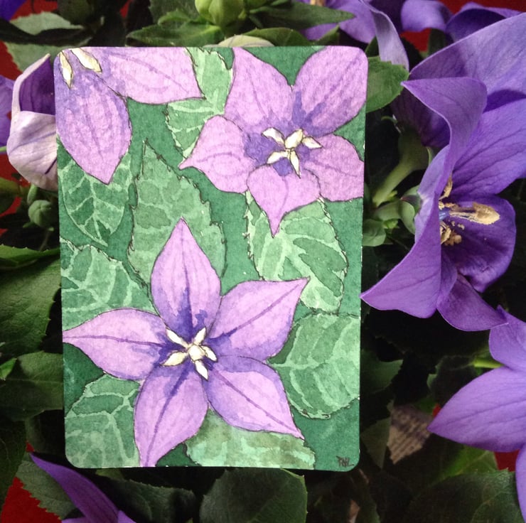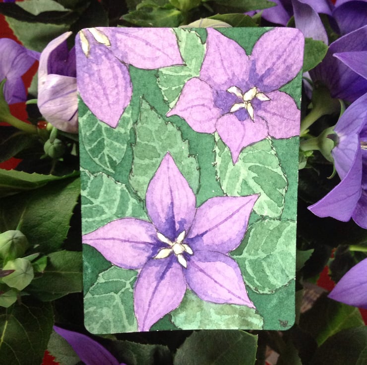 I have a beautiful Platycodon plant and the flowers are in full bloom - perfect inspiration for my little watercolour!