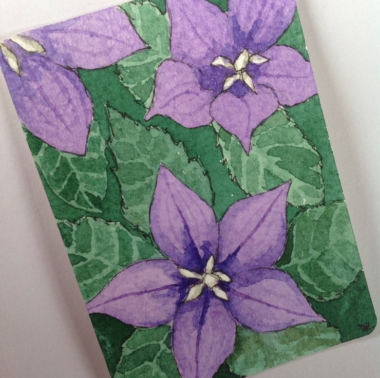 An original watercolour of my Platycodon plant with beautiful purple flowers painted from life when the flowers were in full bloom.