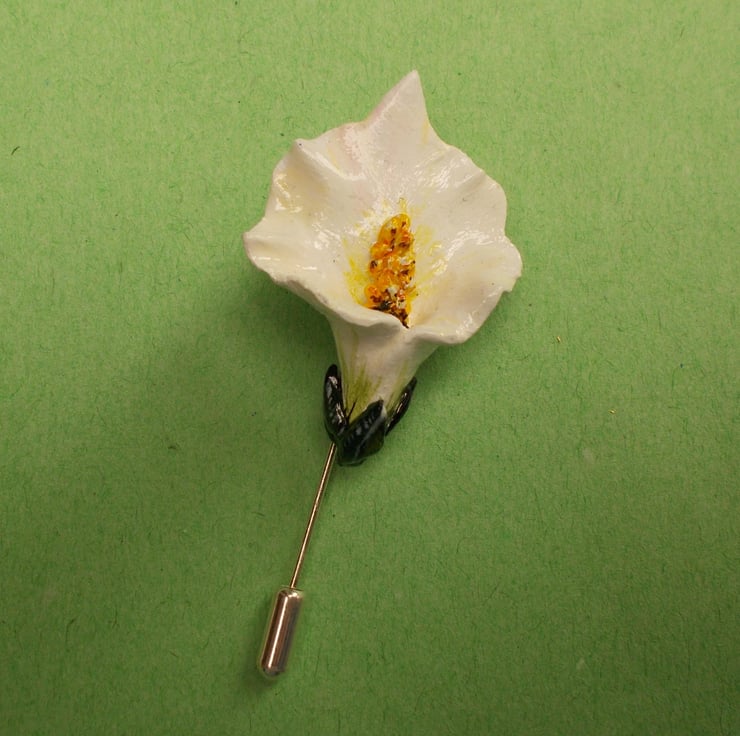 The WHITE CALLA LILY- ARUM LILY STICK PIN- Lapel Flower Pin/ Brooch.
