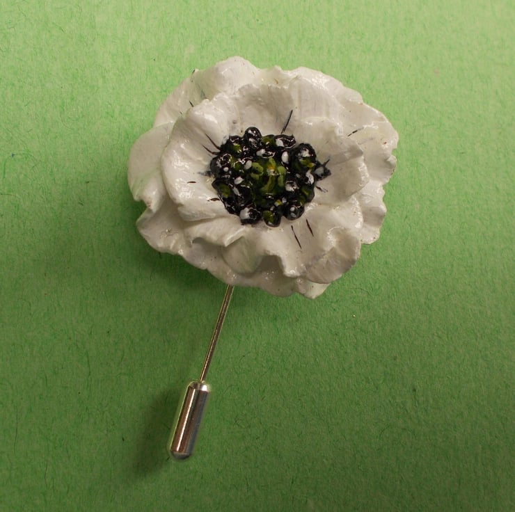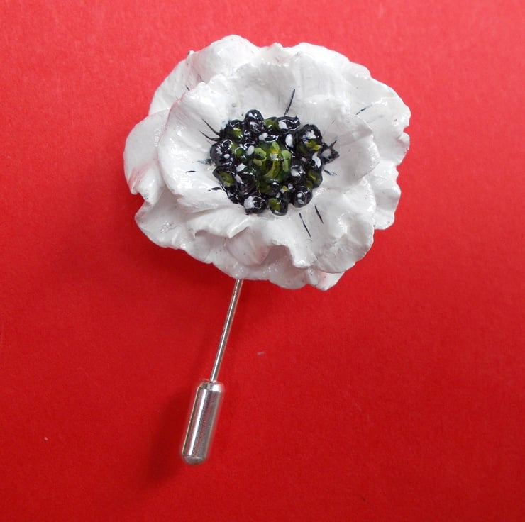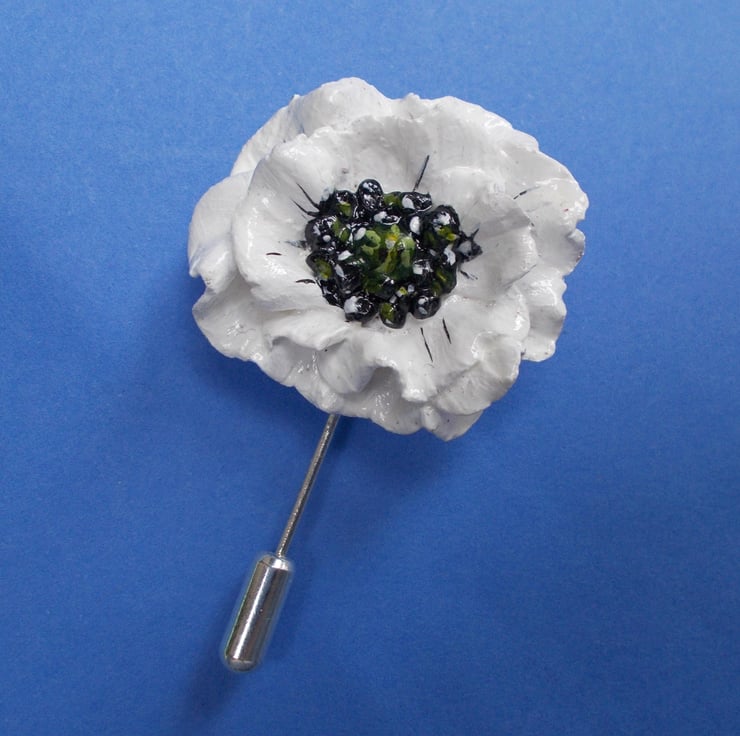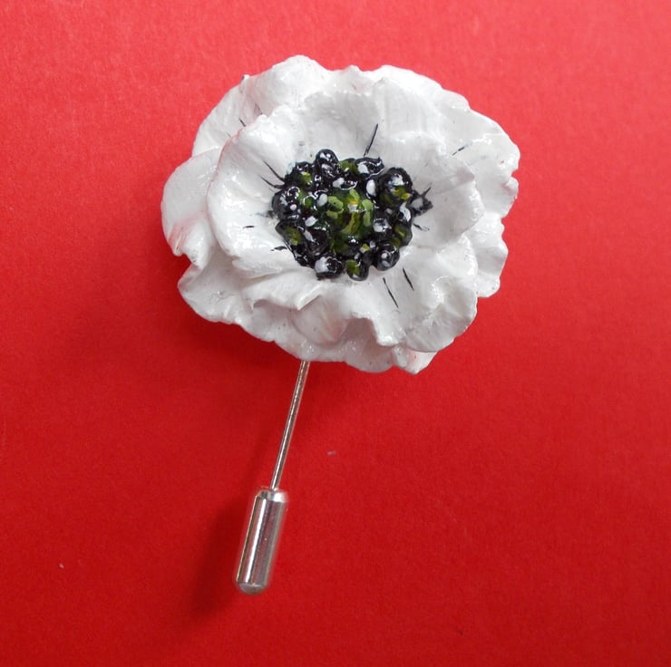 The WHITE POPPY STICK PIN- WHITE PEACE POPPY Lapel Flower Brooch