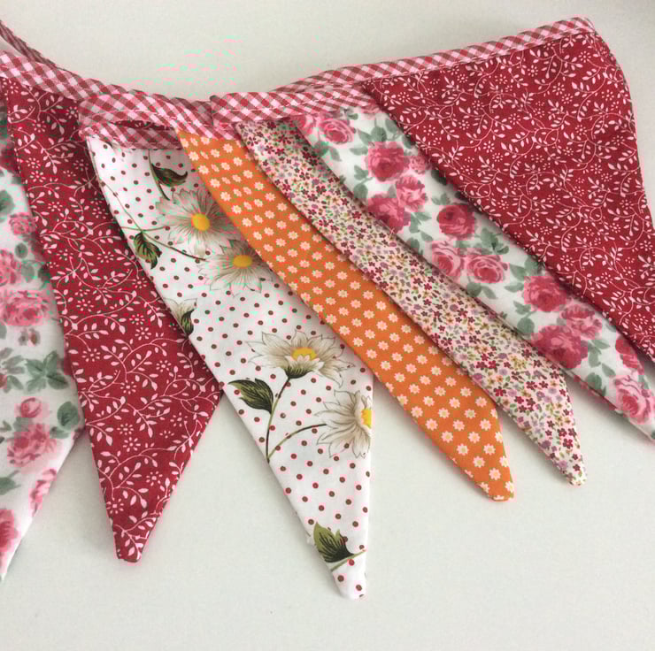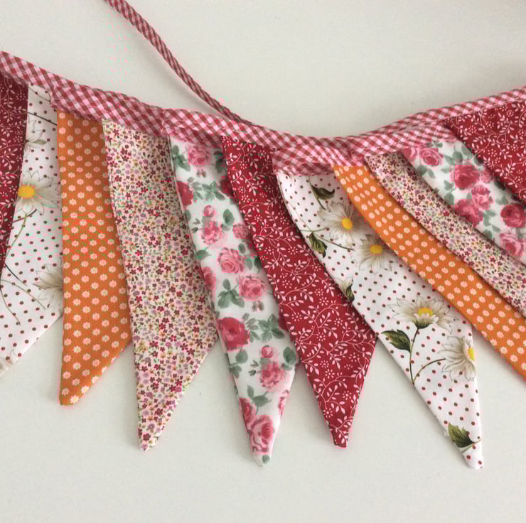 Bring summer indoors with this pretty floral red and orange bunting, 12 flags.