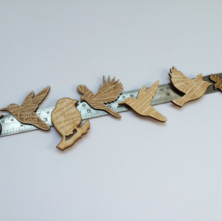 The output was a collection of 'laser tweets' - wood and acrylic birds etched with some of my favourite passages.