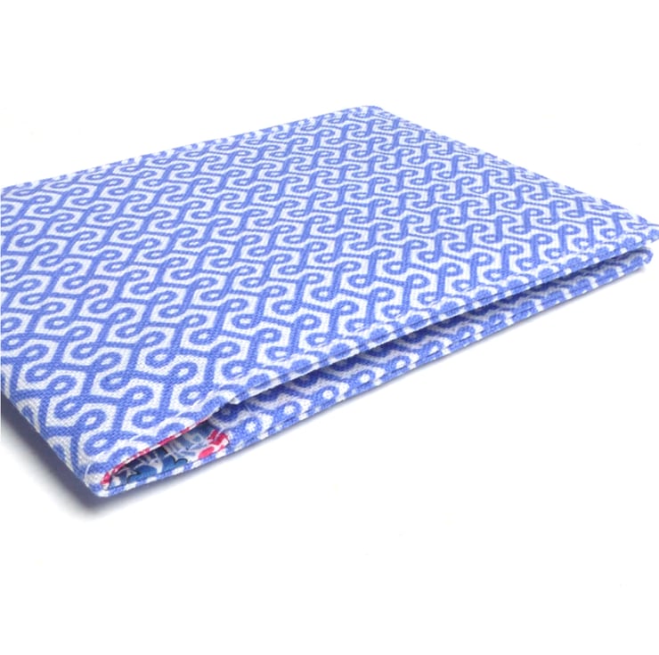 Beautifully made in a blue and white geometric print cotton with a contrastig Liberty print lining and interfaced for added strength and structure.