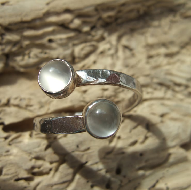 The band has a hammered finish with reflects the light and is finished with 2 beautiful 5 mm Moonstones.