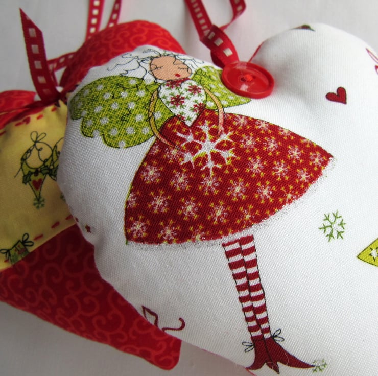 The hearts are also eco-friendly - as I use offcuts from my Christmas Stockings, Santa Sacks and Christmas Aprons that would otherwise go to waste. I also use recycled buttons from my collection.