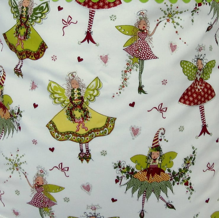 There are a few styles of fairies (see the photo of the fabric) that will be chosen at random. Ribbon style and button colours will vary.