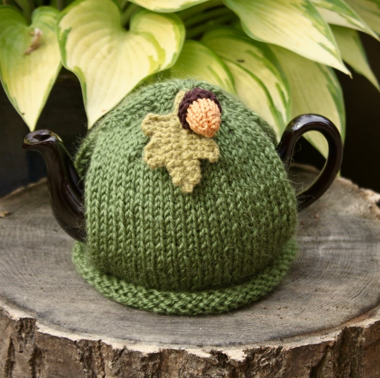 I love nothing better than settling down to my knitting in the afternoon with a small pot of tea just for me. That gave me the inspiration to knit my one cup acorn tea cosy.