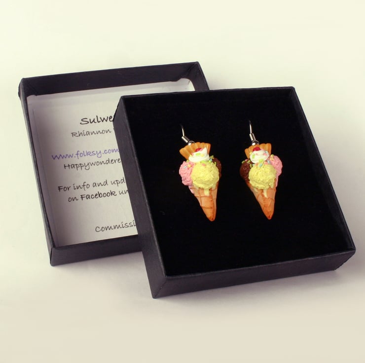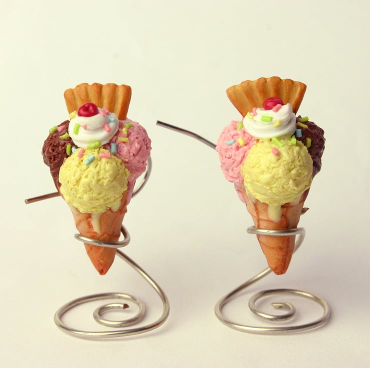 Three flavors of melty ice cream, a wafer fan, a dollop of whipped cream, a cherry AND sprinkles - don't be alarmed if people start dribbling when looking at you wearing these ice cream earrings!
