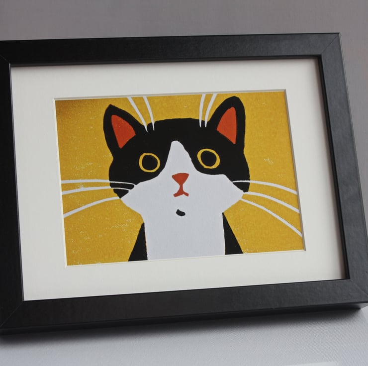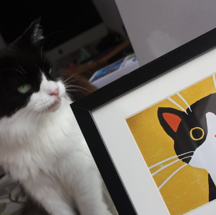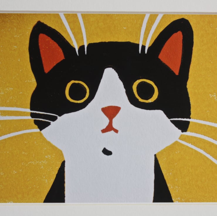 I produced a limited edition of 10 of this lovely little black and white cat reduction linocut. I kept one for myself as I really like it and so have had it giclee printed on archive quality Photo Rag paper.